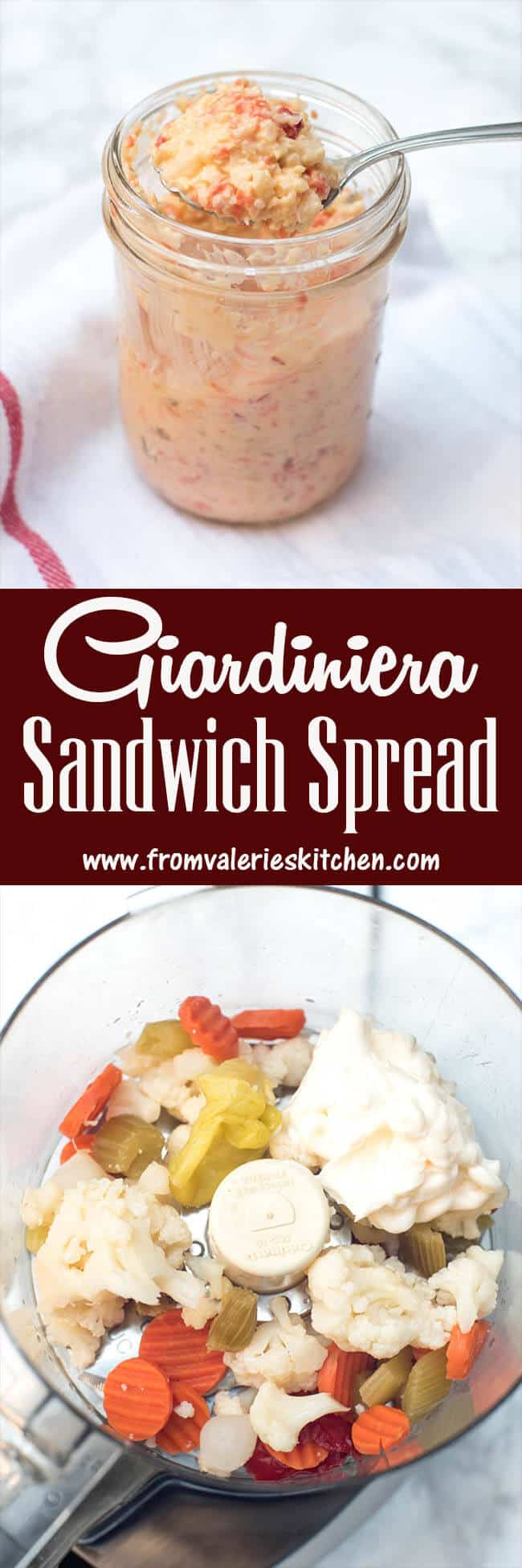 - Place the contents of the jar of drained Giardiniera in the bowl of a food processor. Add ½ cup mayonnaise and pulse until you've reached the desired consistency. Add additional mayonnaise if you prefer a creamier spread.
